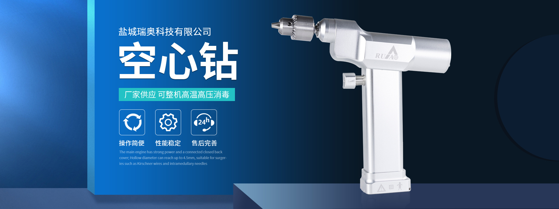 鹽城瑞奧科技有限公司主要產品:醫用電動鋸鉆系列(可高溫高壓消毒和熏蒸消毒兩種):包含骨鉆、擺鋸、胸骨鋸、空心骨鉆、開顱鉆、顱骨銑等等,適用于骨科、腦外科、神經外科、胸外科、手足及顯微外科、脊柱外科、整形外科等各種手術的要求。電動石膏鋸可切割高分子繃帶、石膏等?;A器械系列:咬骨鉗,髓核鉗,椎板咬骨鉗,持骨鉗,四肢骨折手術器械包等。
